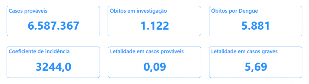 O Brasil registrou 6,5 milhões de casos prováveis de dengue em 2024, com mais de 5.800 mortes confirmadas.