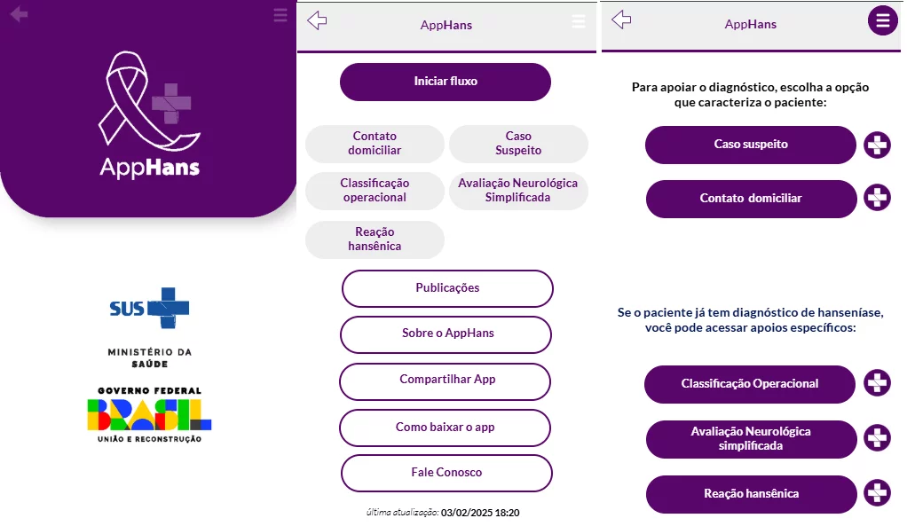 Já para casos confirmados, o AppHANS oferece suporte com informações sobre classificação operacional, avaliação neurológica simplificada e reações hansênicas.