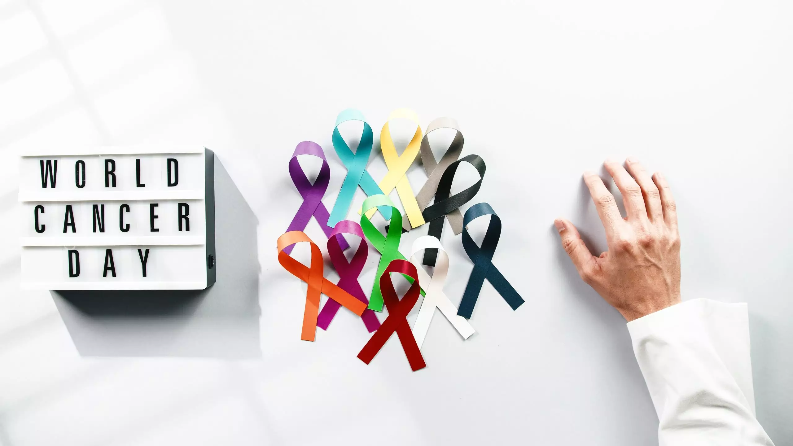 fita do dia mundial de conscientização do câncer com a mão de um médico Por PolonioVideo