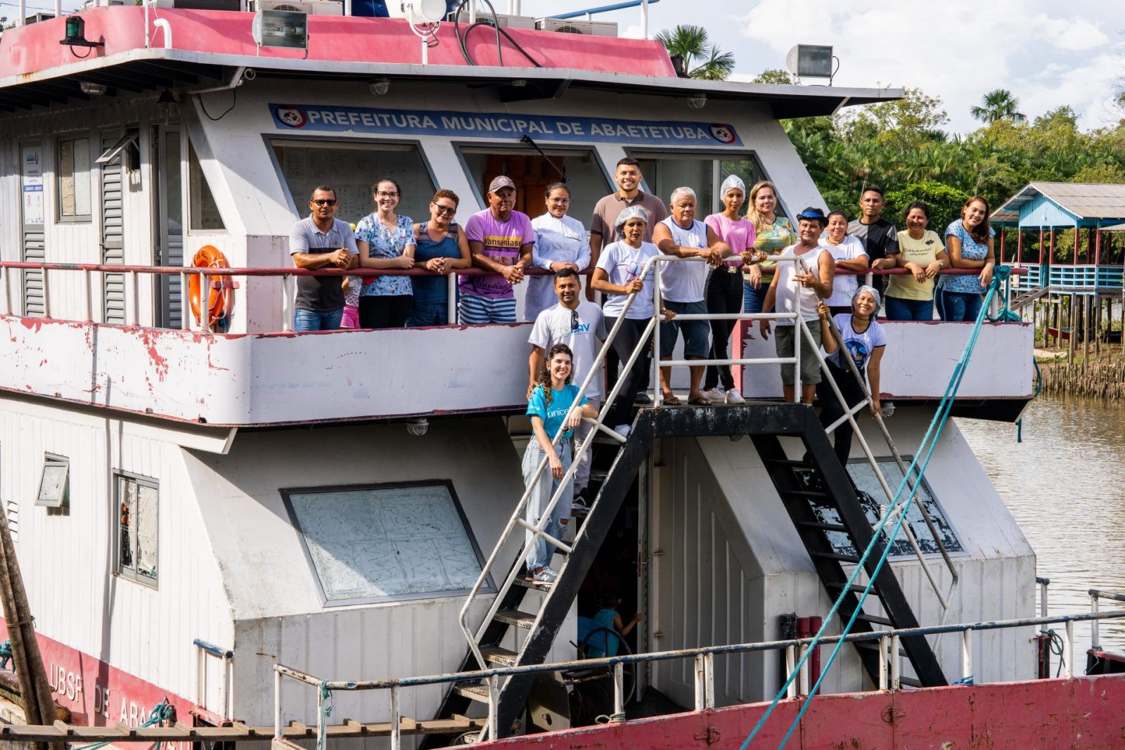Na sexta-feira, 14 de abril de 2023, na cidade de Abaetetuba, no Pará, profissionais de saúde se reúnem cedo no Porto Municipal para iniciar uma jornada de 16 dias a bordo da Unidade Básica de Saúde (UBS) Fluvial. Eles embarcam em uma missão para levar vacinas, assistência médica e cuidados de saúde às comunidades ribeirinhas espalhadas pelas 72 ilhas do município. Essa equipe é treinada na estratégia Busca Ativa Vacinal, desenvolvida pelo UNICEF e parceiros, visando impulsionar a imunização infantil.