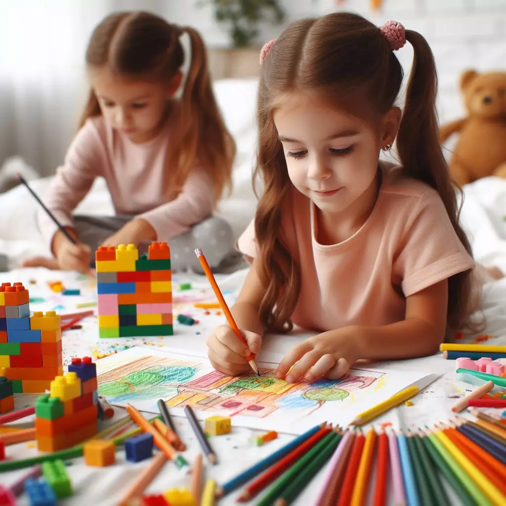 Crianças desenhando e montando Imagem criada por inteligência artificial