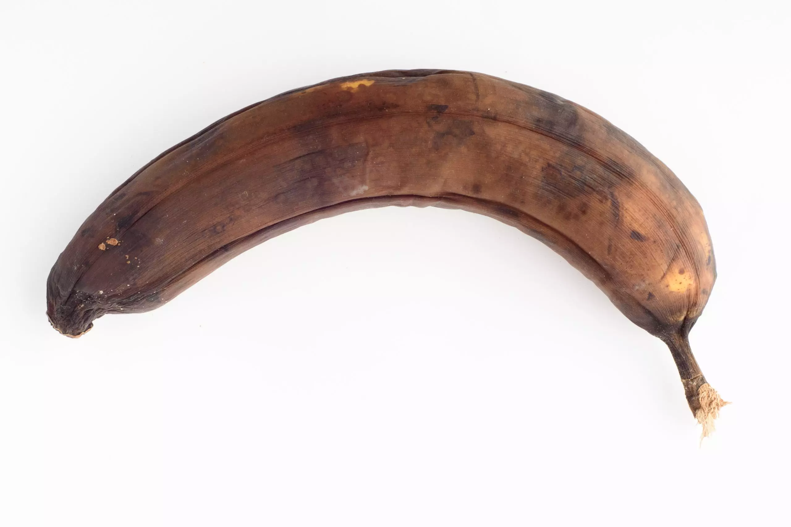 Banana podre isolada no fundo branco. Por wolfhound9111