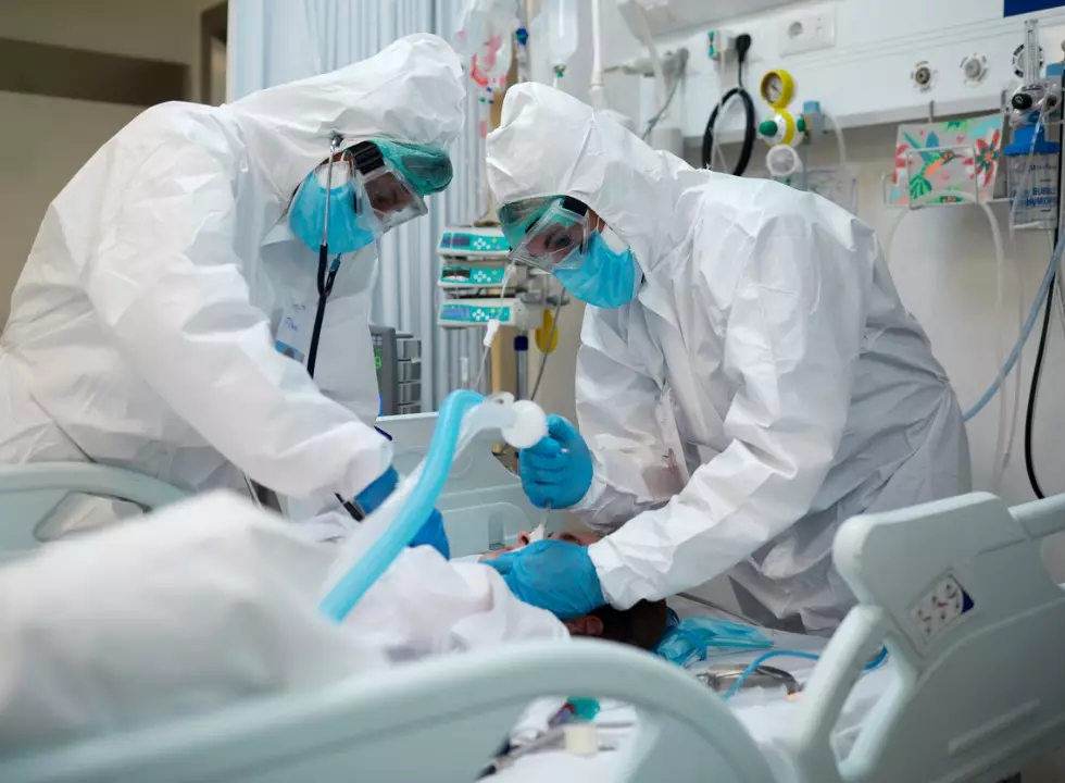 Arquivo de imagem de profissionais da saúde entubando paciente com covid-19