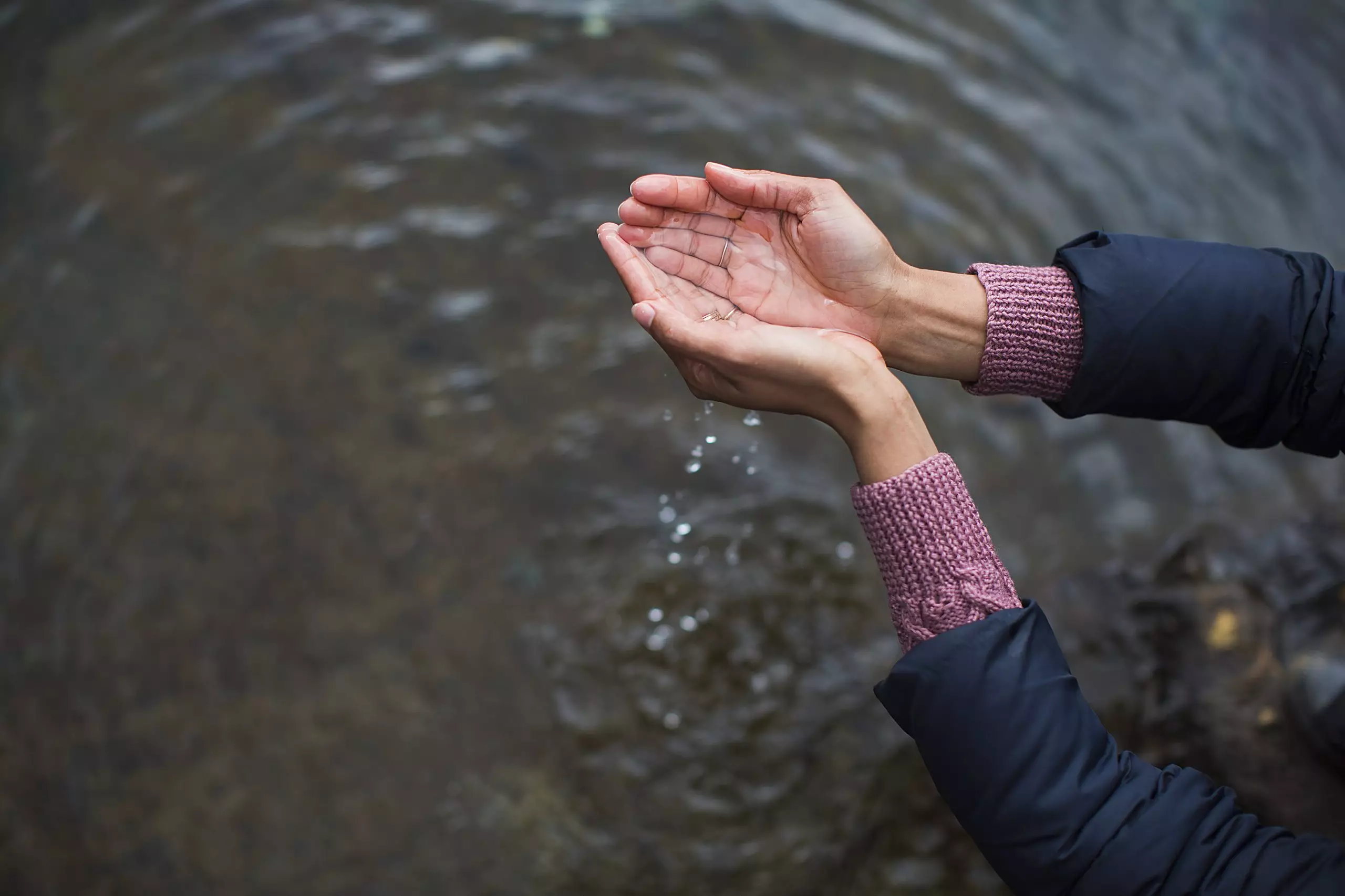 Mulher segurando água nas mãos em forma de concha Por Image-Source