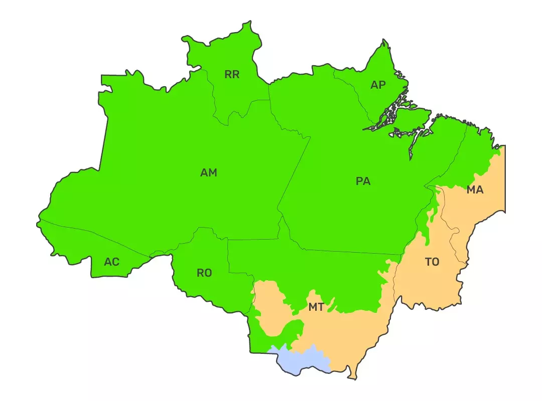 Conforme o Instituto Brasileiro de Geografia e Estatística (IBGE), Amazônia Legal é a maior parte do Brasil, cerca de 60,56% do território brasileiro. Abrange nove estados: Acre, Amapá, Amazonas, Maranhão, Mato Grosso, Pará, Rondônia, Roraima e Tocantins e possui uma área de 5.155.703,422 km² e uma população de 32.391.584 habitantes, o que representa cerca de 15,95% da população brasileira.