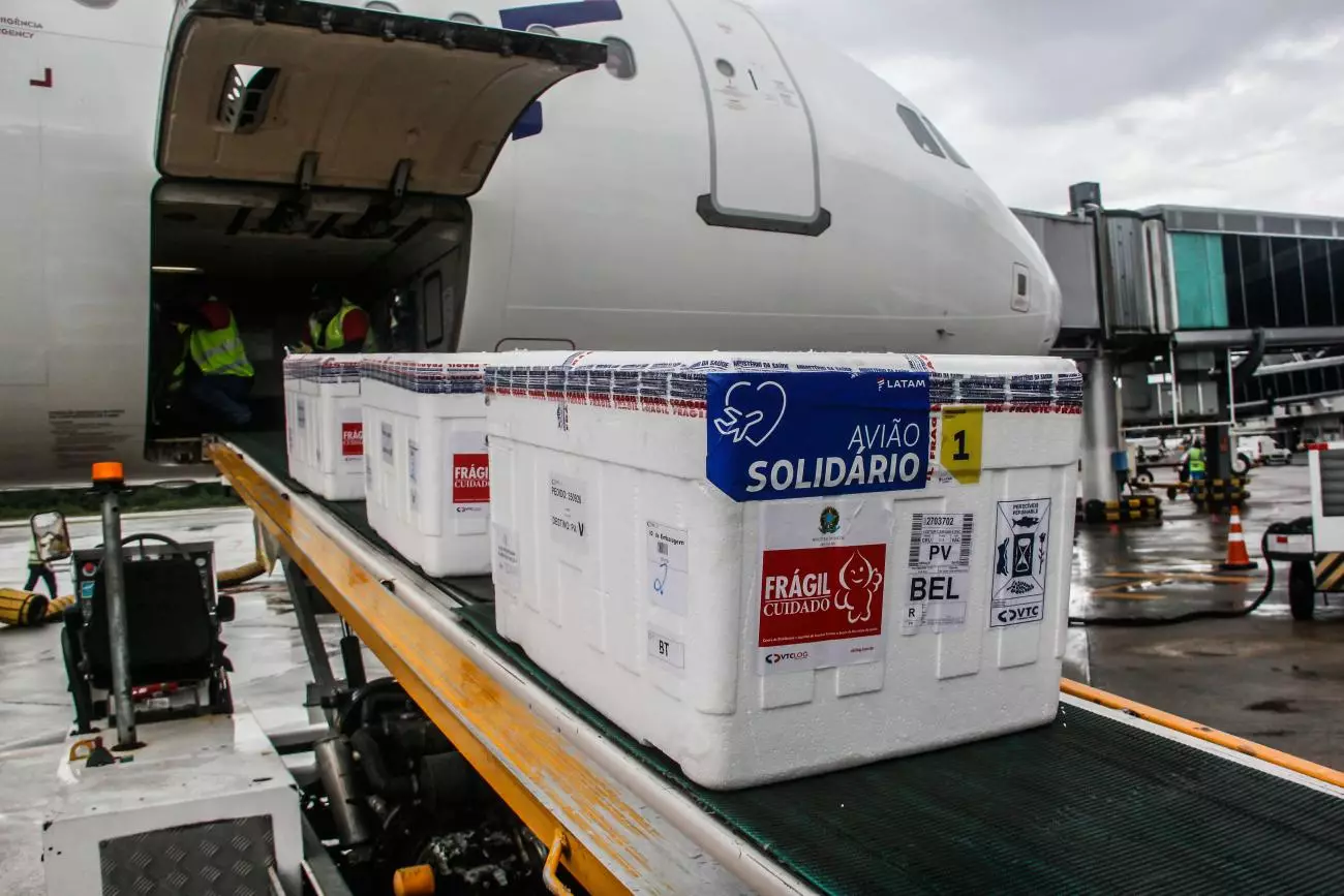 A décima nona remessa de vacinas contra Covid-19 chegou a Belém na tarde deste sábado (8). Foram enviadas pelo Ministério da Saúde (MS) 31.200 doses da vacina CoronaVac/Sinovac, produzida pelo Instituto Butantan. Até o momento, o Estado recebeu 2.260.330 doses de vacinas contra a Covid-19, entre imunizantes do tipo CoronaVac/Sinovac, Oxford/AstraZeneca e Pfizer.