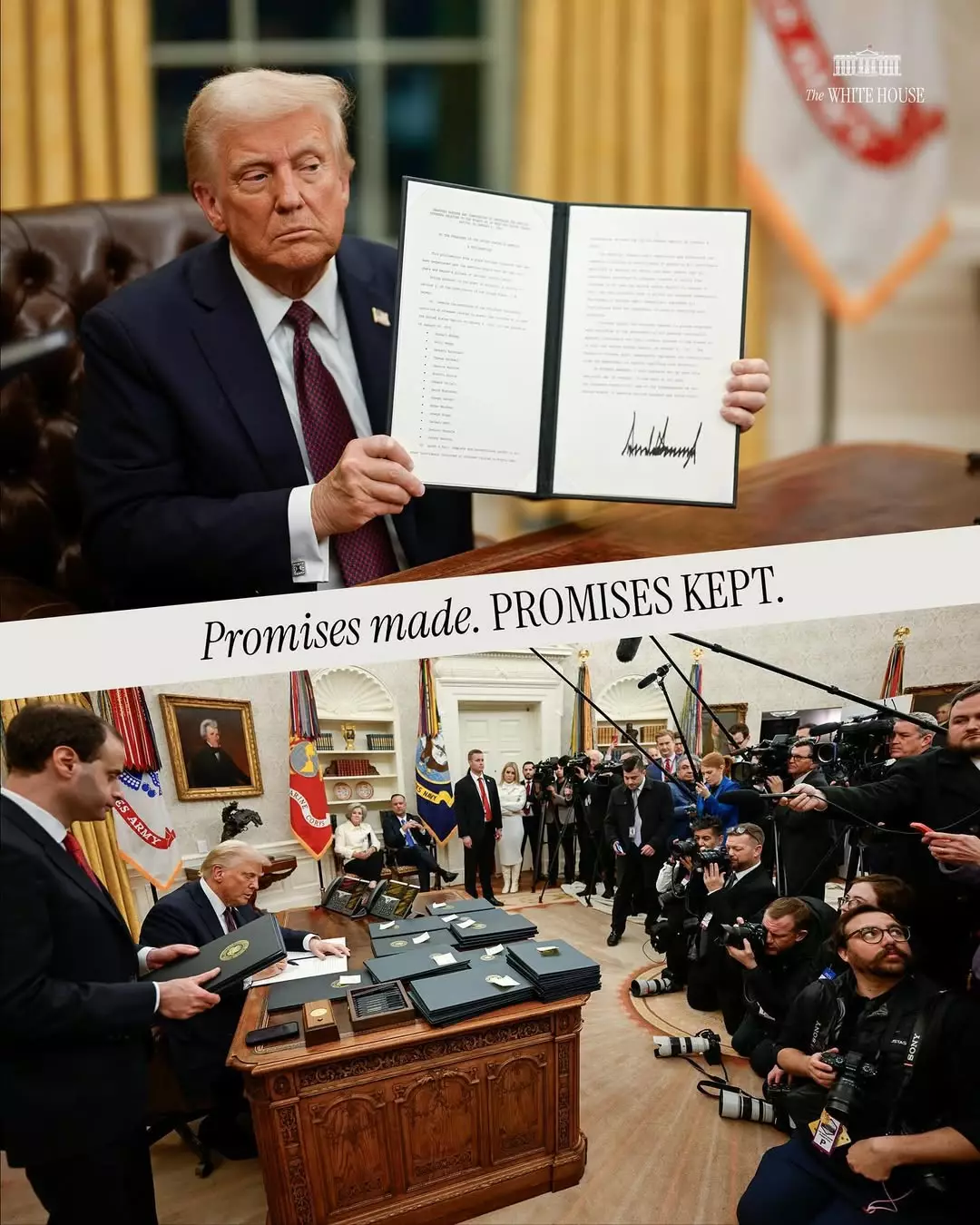 Foto do presidente dos EUA, Donald Trump, assinando decretos durante seu 1º dia de mandado Foto: divulgação da Casa Branca