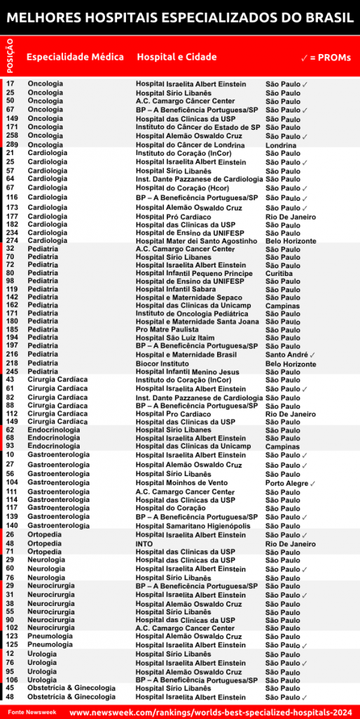Para ver a lista dos hospitais brasileiros de 2023, clique AQUI