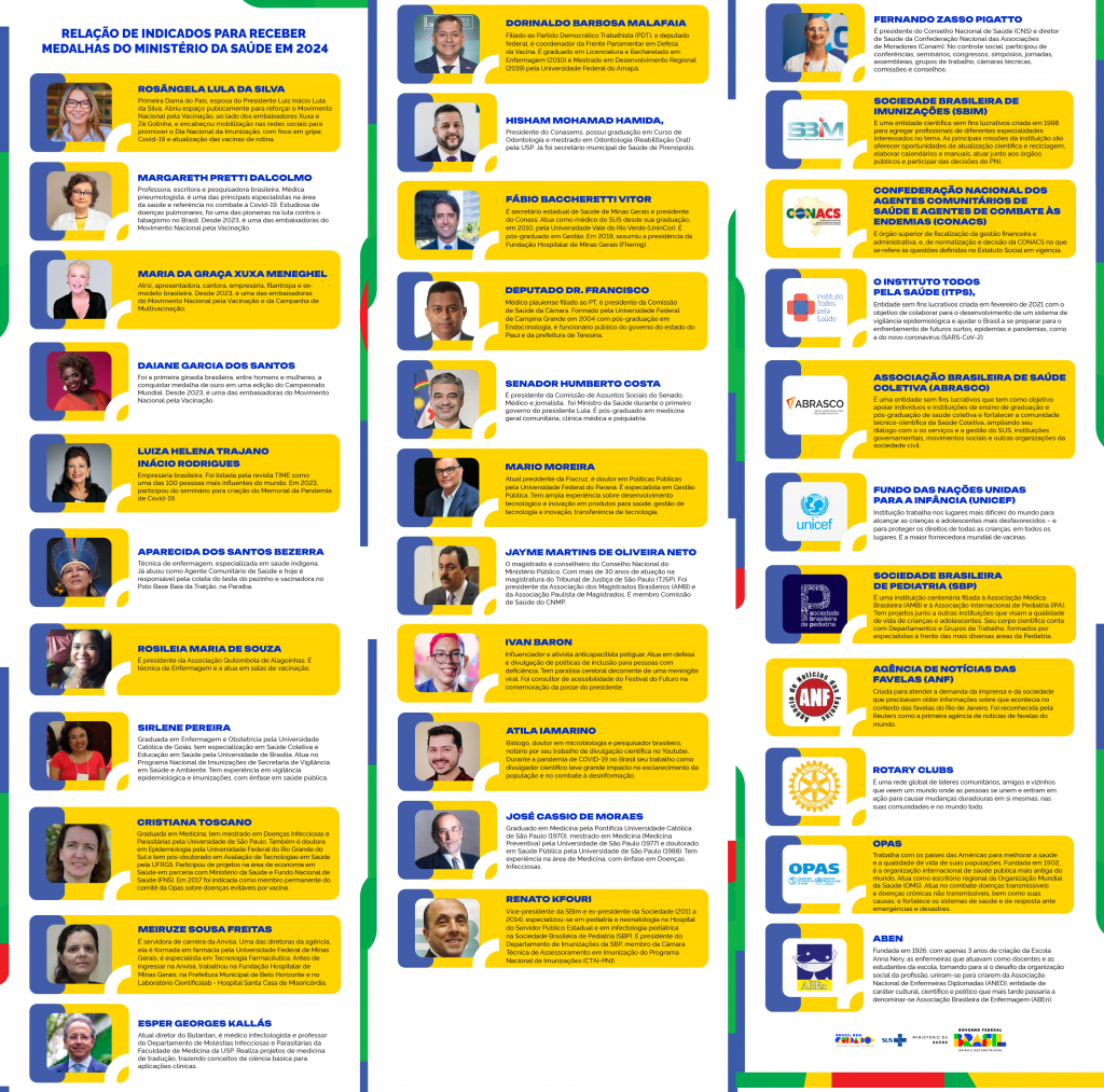 Nesta edição, todos os condecorados foram agraciados com a categoria ouro. Entre os homenageados estavam a primeira-dama Rosângela Lula da Silva (Janja) e o ativista anticapacitista Ivan Baron, que receberam reconhecimento por suas contribuições ao Movimento Nacional pela Vacinação.