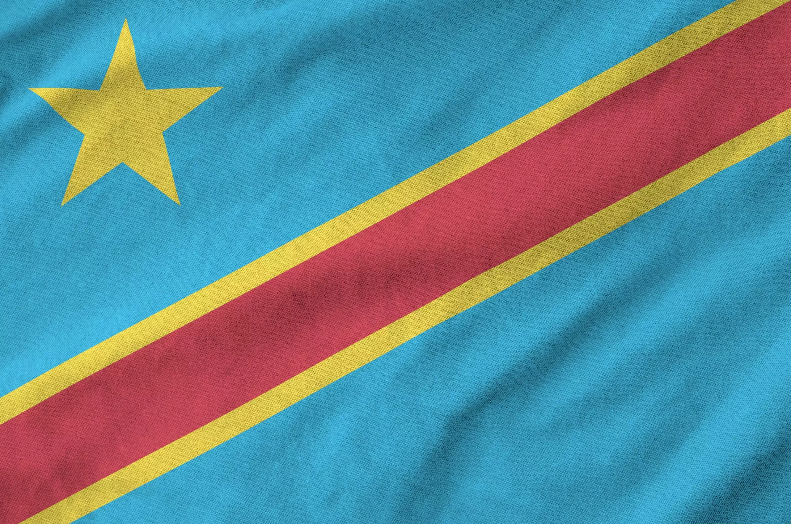 Bandeira da República Democrática do Congo retratada em tecido ondulado dobrado de tecido velho Por Mehaniq41