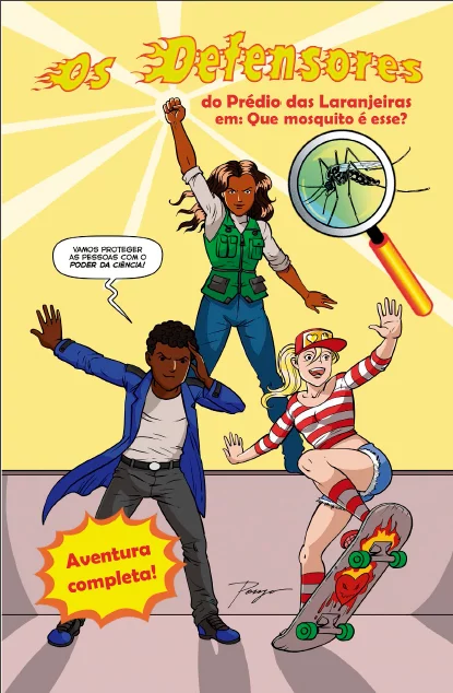 Na emocionante história em quadrinhos “Os Defensores do Prédio das Laranjeiras em: Que Mosquito é Esse?”, um trio de crianças se torna a última linha de defesa contra um surto de dengue que ameaça o edifício onde vivem. Alex, Camila e Gigi embarcam em uma aventura cheia de desafios para eliminar os focos do mosquito Aedes aegypti, responsável pela transmissão de doenças como dengue, zika e chikungunya.