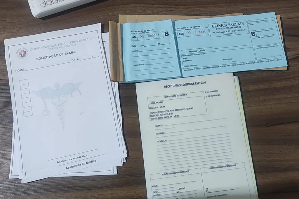 O desfecho se deu quando as autoridades realizaram a prisão em uma clínica localizada na Travessa São João Batista, no bairro Centro. No local, foram apreendidos diversos materiais, incluindo carimbos, receituários, protocolos médicos, anotações e até mesmo fichas de pacientes, totalizando 12.