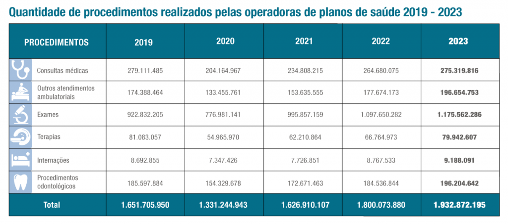 Foram 1,93 bilhão de procedimentos, entre consultas, exames, terapias e cirurgias, um crescimento de 7,4% em relação a 2022, quando foram contabilizados 1,8 bilhão.