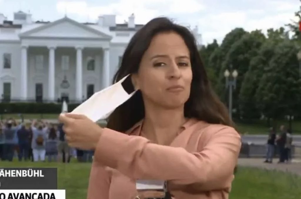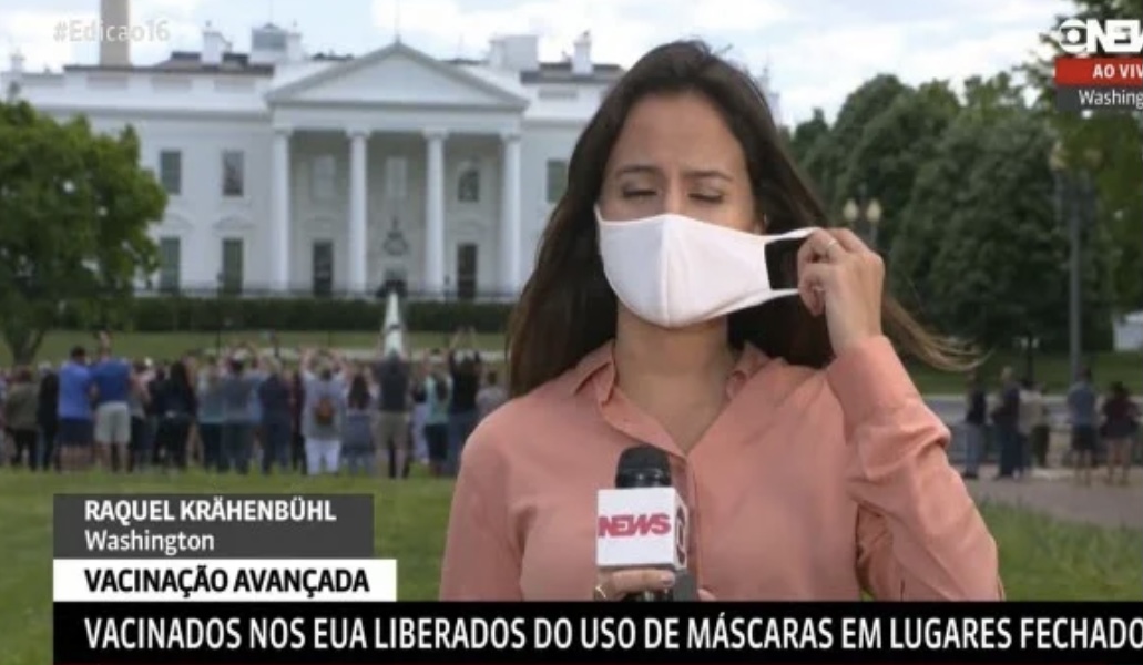 A correspondente da GloboNews na Casa Branca, Raquel Krähenbühl, tirou a máscara hoje ao vivo na “Edição das 16h”.