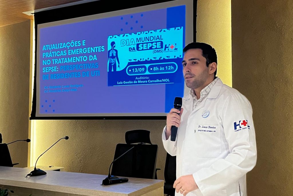 Durante o evento, o coordenador de Ensino do HOL, professor doutor Rommel Burbano, destacou os desafios enfrentados durante a pandemia de Covid-19, quando houve um aumento significativo dos casos de sepse no Brasil.