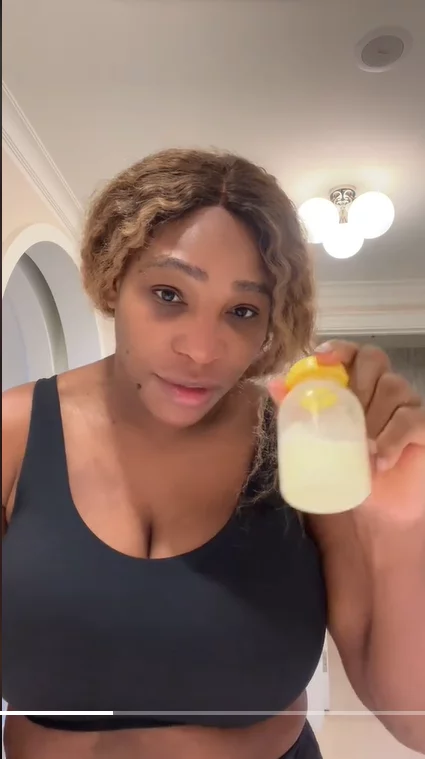 A tenista Serena Williams ao mostrar que usa seu leite materno para queimaduras de sol no TIKTOK